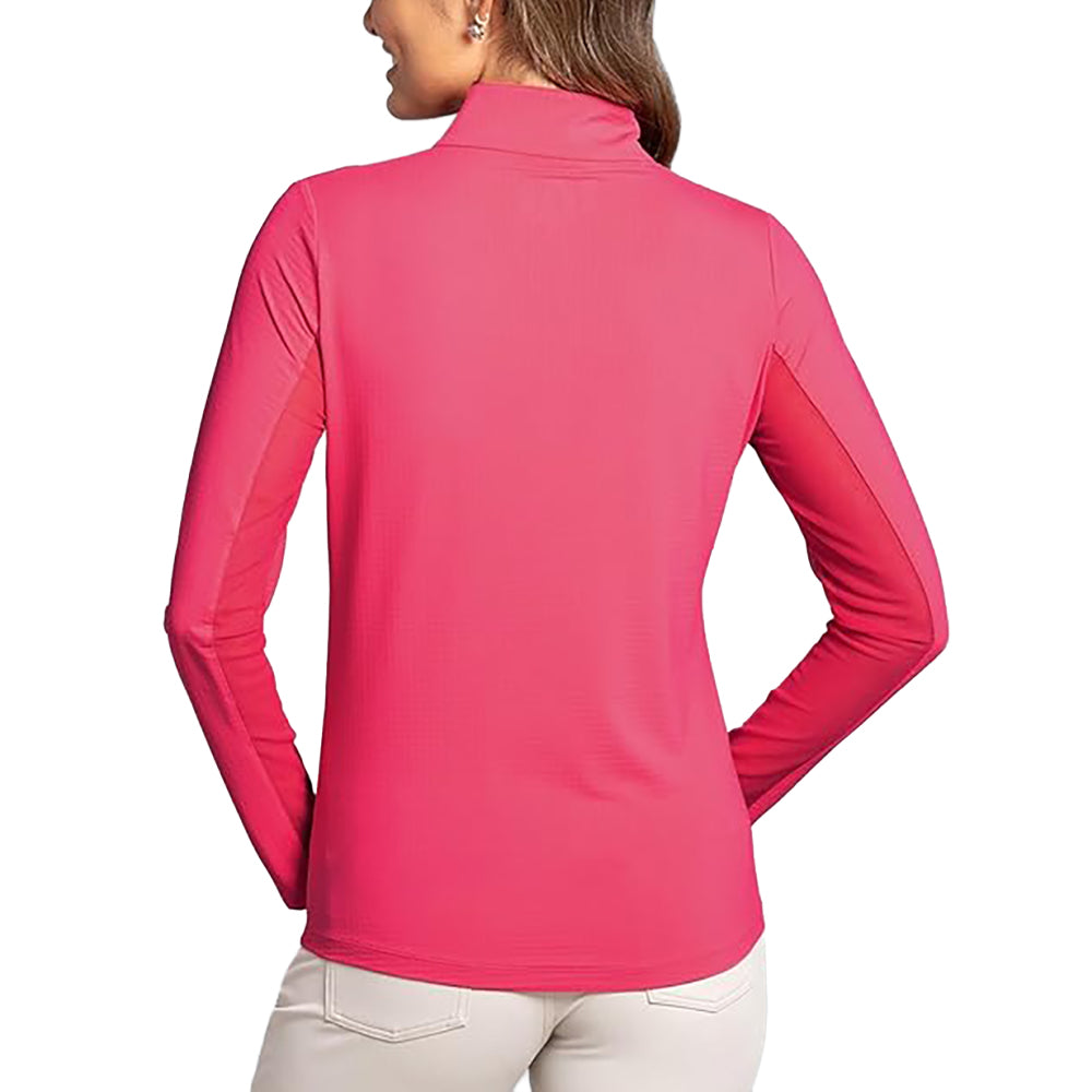IBKUL Women's Solid Long Sleeve Zip Mock Neck Shirt - Watermelon