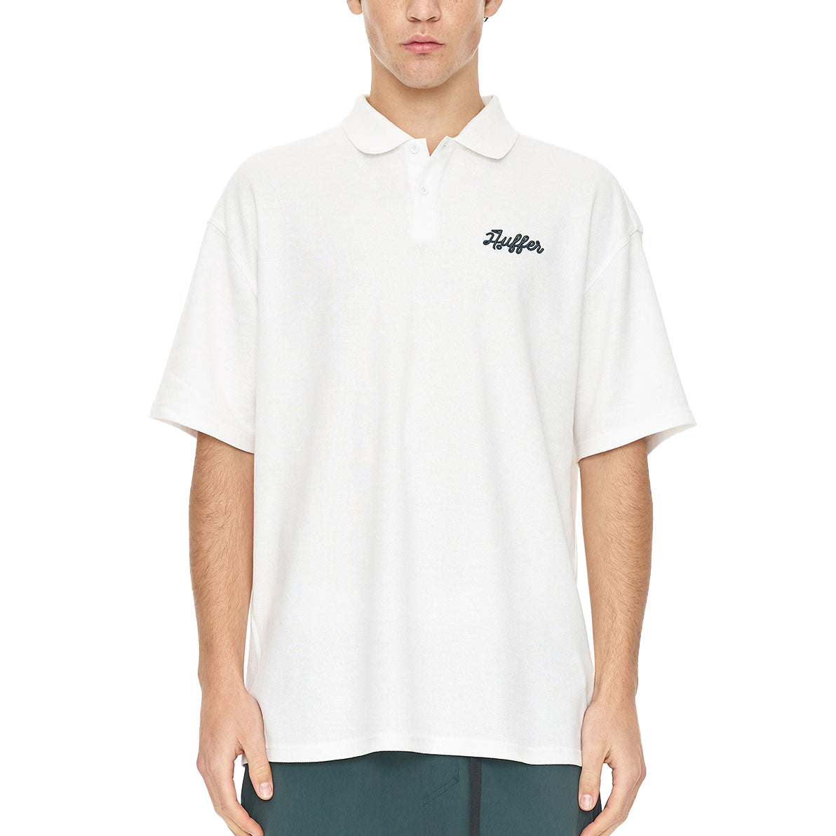 -Huffer 品牌徽章刺绣位于左胸