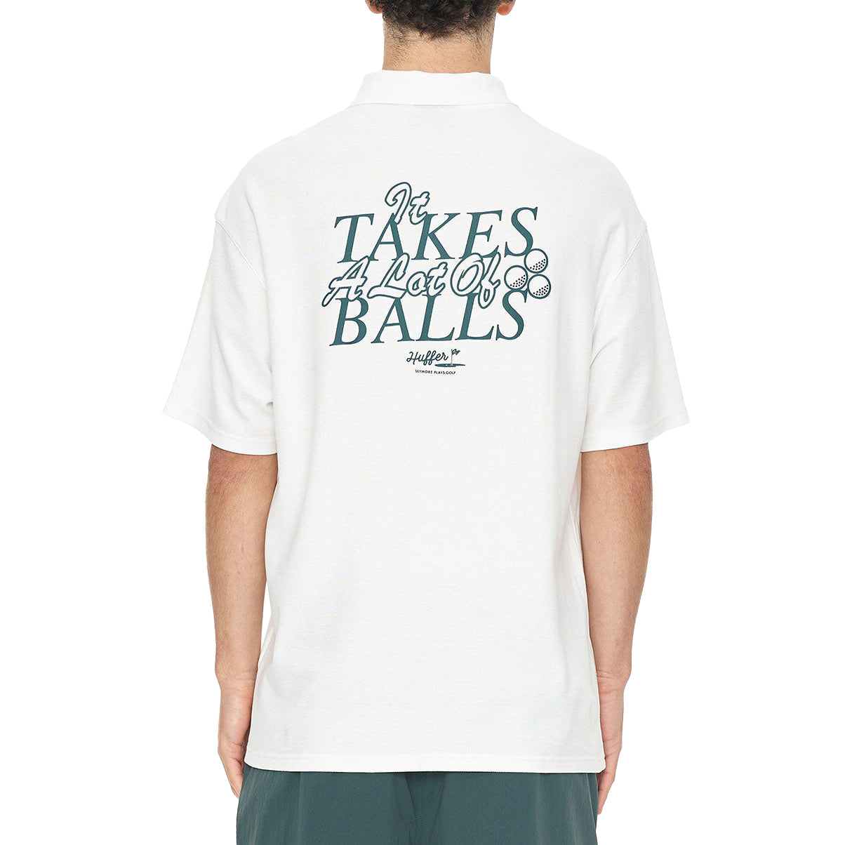 以下是您应该了解的内容:245gsm 60% 棉 40% 涤纶珠地布,一款宽松的街头服饰,背面印有 IT TAKES A LOT OF BALLS 丝网印刷 - 将标志性的 Huffer 活力带入球场。